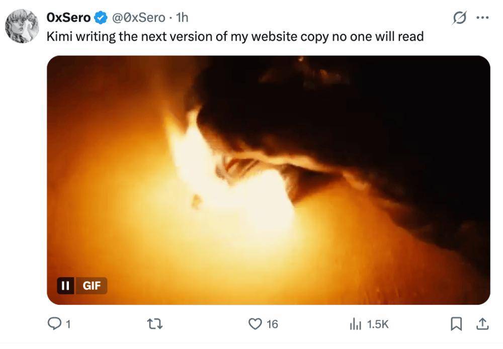Thrive Protocol AI与数据工程师、Ethers Club播客主持人0xSero说(他用)Kimi创建了新的网站页面。