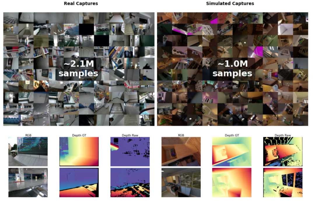 基于这一套设计,其累计获取了100万个合成样本、200万个真实世界样本,所有样本均包含同步的RGB图像、原始传感器深度数据及立体图像对。