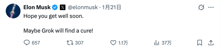 “希望你能快点好起来。也许Grok会找到治愈(莱姆病)的方法!”