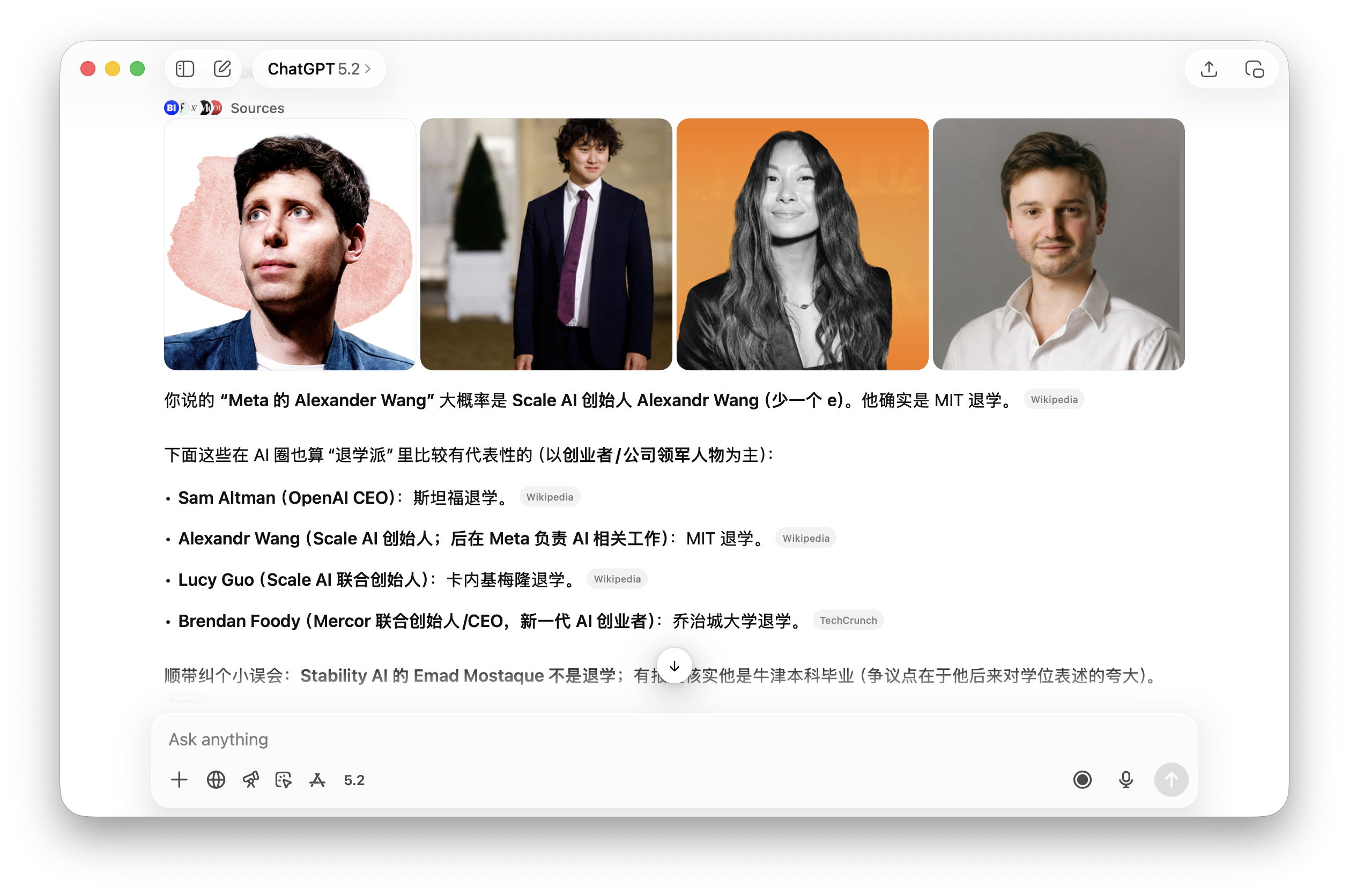 ▲AI 圈里,从名校辍学去创业还做得很好的人,其实很少