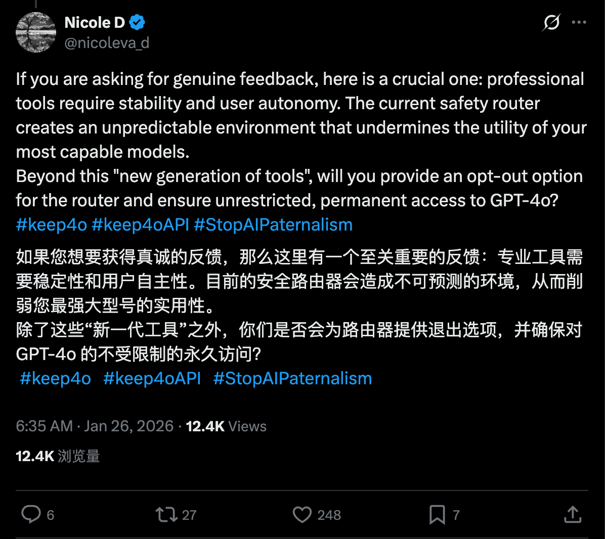 ▲除了写作能力的下降,多数网友对 ChatGPT 的声讨,还是集中在路由机制和 4o 的回归