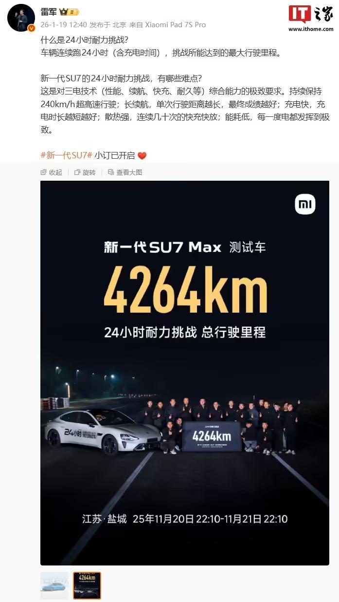 据IT之家此前报道,雷军曾在本月早些时候简单介绍了这次 24 小时耐力挑战:车辆连续跑 24 小时(含充电时间),挑战所能达到的最大行驶里程。针对新一代 SU7 的 24 小时耐力挑战有哪些难点,雷军也作出解释: