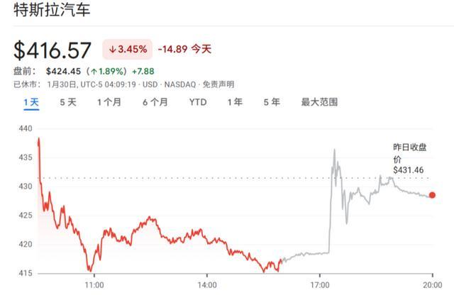 市场对这一消息反应迅速。美国东部时间1月29日,特斯拉股价发生变化,特斯拉股价在盘后交易中一度上涨约4.5%,尽管当日常规交易时段下跌约3.5%。