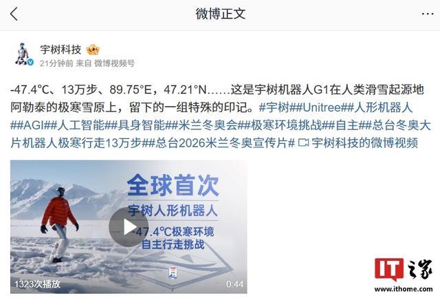 IT之家 2 月 1 日消息,央视新闻今日发布了 2026 冬奥预热视频,记录了全球首次人形机器人极寒天气下自主行走挑战。