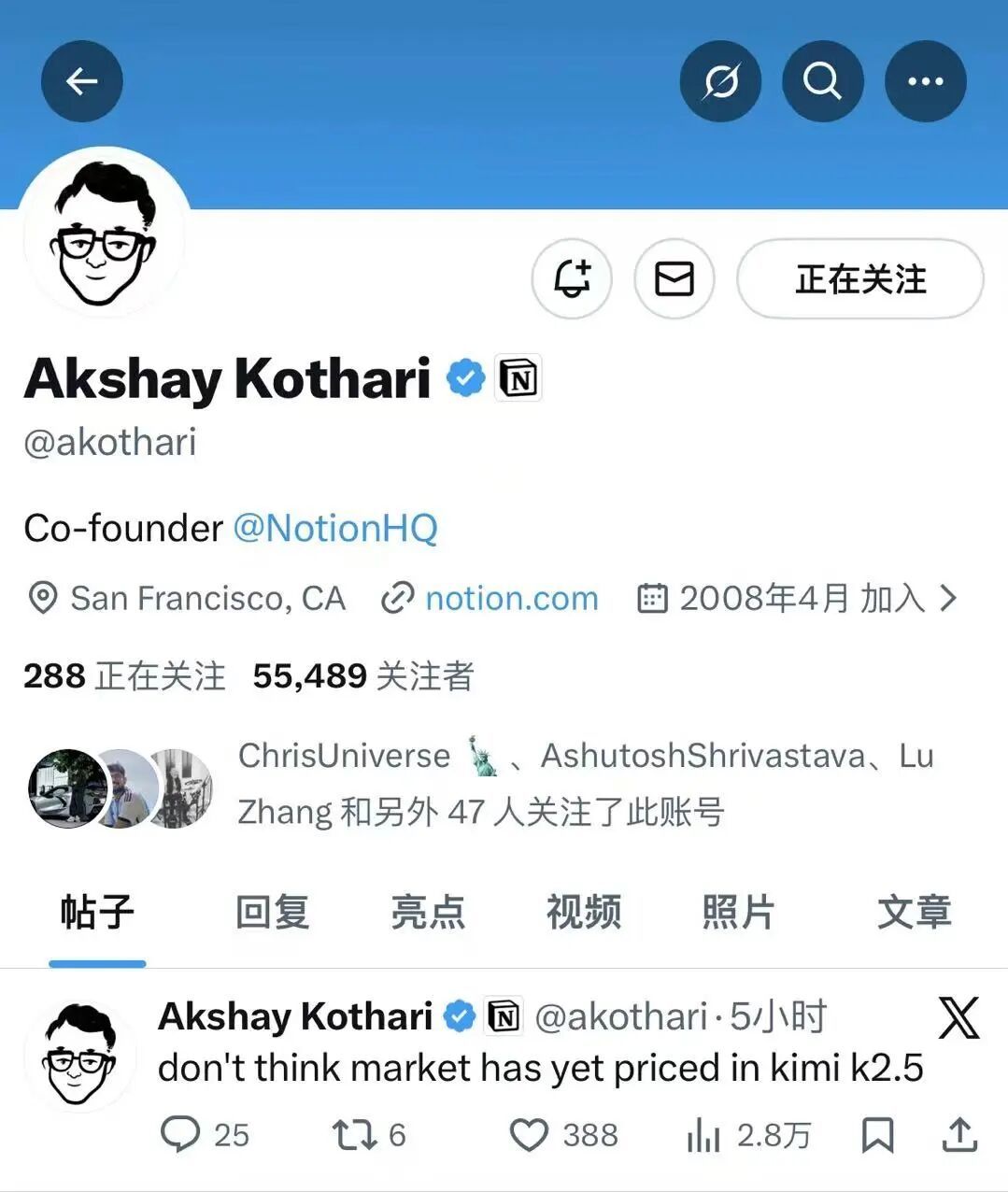 投资和产品圈里,Notion联合创始人Akshay Kothari几个小时前那句“市场可能还没给Kimi 2.5定价”,在X上被反复引用,大家好像都在琢磨这句话背后的意思。