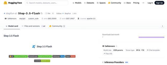 Step 3.5 Flash开源页面(来源:Hugging Face)