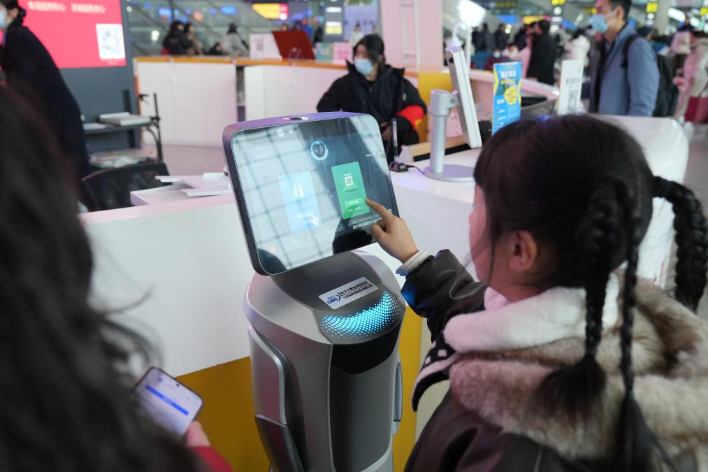 新华社成都2月2日电(记者谢佼)2月2日春运首日,铁路成都东站的机器人“查询师”悄然上岗,为春运出行“上新款”。