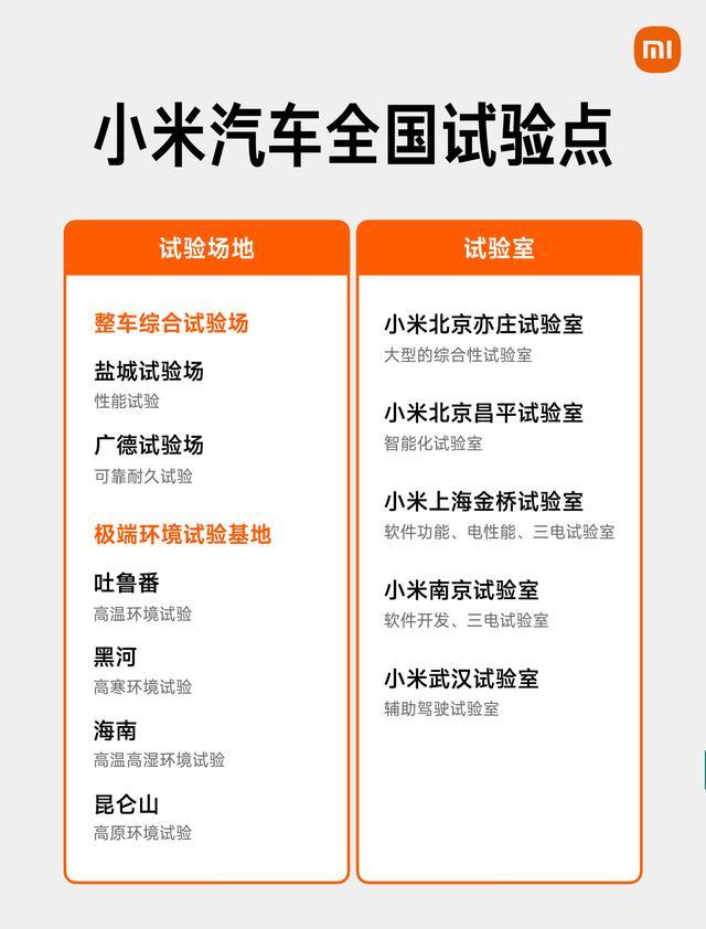 据IT之家此前报道,雷军在 2 月 1 日晚在北京亦庄举行科普直播,揭秘新一代 SU7 的研发过程,并介绍称小米汽车已经在全国范围内建立研发测试体系,目前已在北京、上海、南京、武汉四地设立 150 余个专业试验室。
