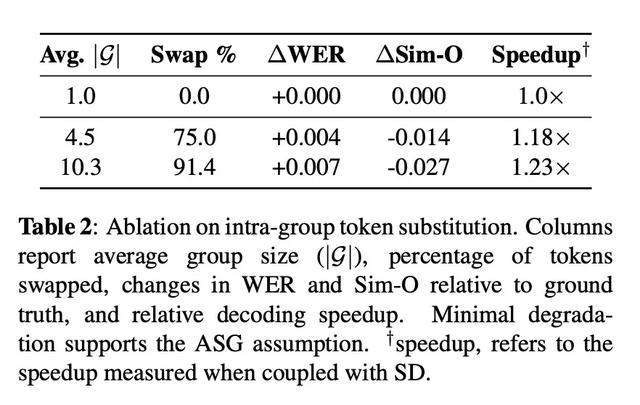 在一项极限压力测试中,研究人员将 91.4% 的语音 token 替换为同组的其他 token,结果显示词错率仅增加了 0.007,说话人相似度仅下降 0.027,人耳几乎无法察觉差异。