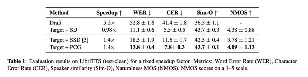 试验数据显示,应用 PCG 技术后,语音生成速度提升了约 40%,且并未牺牲音频质量。在自然度评分(满分 5 分)中,该模型取得了 4.09 的高分。