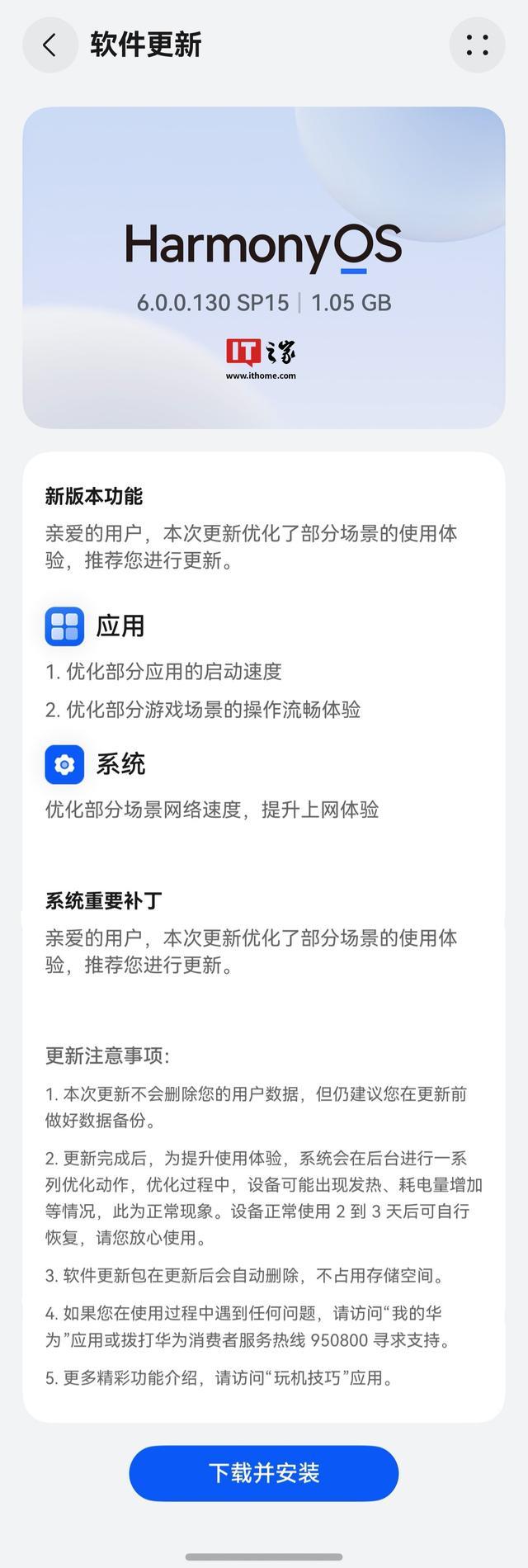 IT之家附华为鸿蒙 HarmonyOS 6.0.0.130 SP15 版本更新内容如下: