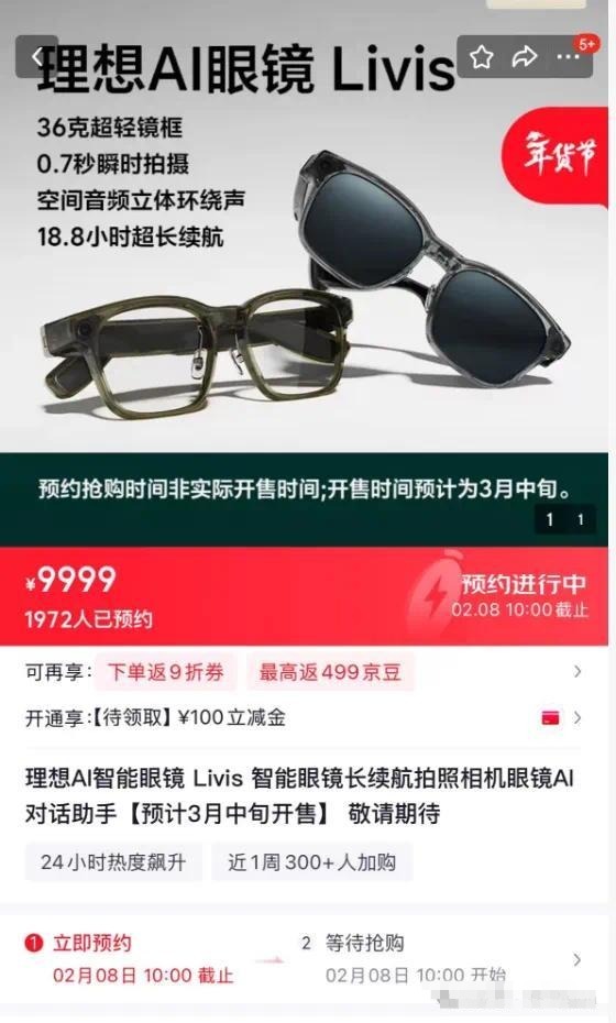 据了解,理想汽车于去年12月3日发布并旗下首款AI眼镜Levis AI智能眼镜,并于当天开启在理想商城及京东商城现货销售。产品主打第一视角拍摄、快速AI响应及控车能力,仅重36克,采用TR90超轻材质与钛合金转轴。和蔡司镜片达成合作,提供多种光学版本,然后开售后不到一周产品就已全部售罄。根据京东平台显示“因产能不足,首批订单预计2月底前完成交付。”