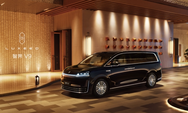 外观方面,智界V9采用封闭式前脸与贯穿式灯带设计,车身尺寸长宽高分别为5359/2009/1879毫米,轴距达到3250毫米,采用2+2+3的七座布局。
