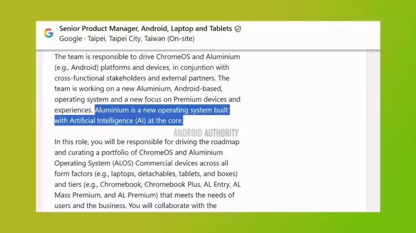 IT之家 2025 年 11 月 26 日报道过,Telegram 爆料者 @Frost Core 分享了一份谷歌招聘公告,公告中首次明确提到这项工作涉及“一套新的、基于 Android 的 Aluminium 操作系统”。同时,该招聘信息要求应聘者制定一份从“ChromeOS 过渡到 Aluminium 并确保未来业务连续性的策略”。