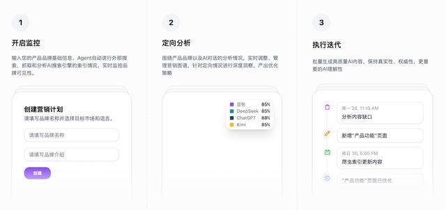 内容侧则以Agent协作方式组织内容生成、校验与迭代,目标是减少信息失真,并提升品牌信息在不同模型输出中的一致性。