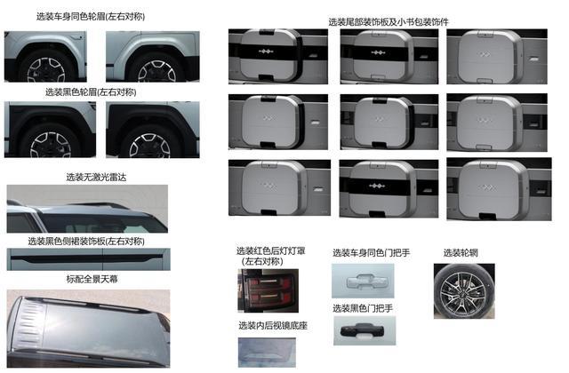 该车标配全景天幕,可选激光雷达、拖车钩。