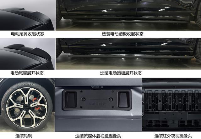 新车还配备灵感源自宫殿台基的一体式直瀑格栅、一体式驭风前机盖(两侧导流槽降低风阻,视觉重心下移,轮廓更紧致)、双核随速 AGS(10 万平方毫米智能呼吸格栅,兼顾散热与低风阻)。