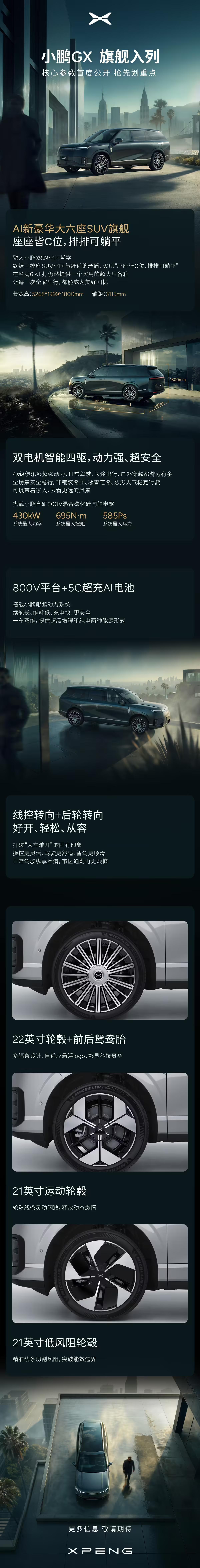 IT之家 2 月 6 日消息,工信部今日发布第 404 批《道路机动车辆生产企业及产品公告》新产品公示,小鹏 GX 现身其中。随后,小鹏汽车公布这款新车的部分规格。