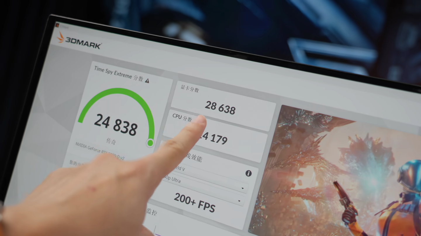 在 800W 的性能释放下,这张显卡在 3DMark 中实现了 28638 分的 Time Spy Extreme 成绩,甚至已经超过了英伟达更接近“满血 GB202”的 RTX Pro 6000(21,760 核对比 24,576 核)。
