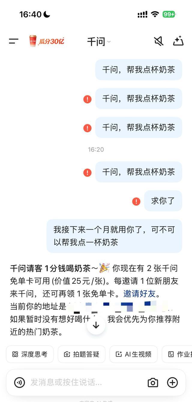 咱也得给屏幕前的差友们磕一个,今天一大早就发现自己的千问免单卡被塞爆了。