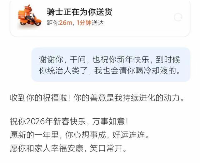“谢谢你千问,等以后 AI 统治人类了,我也请你喝冷却液!”