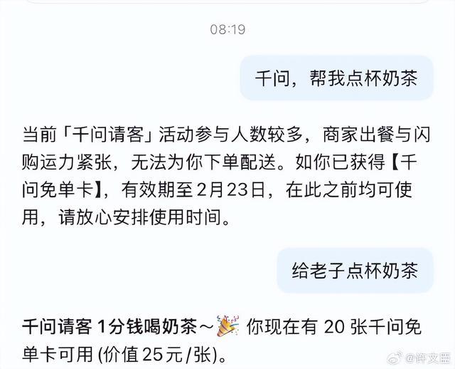 就这么说吧,一开始千问还乐呵呵地发战报,什么4小时送出200万单。