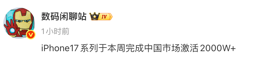 根据最新数据,截至目前 iPhone 17 全系在国内的激活量已经突破 2000 万,其中 Pro 系列两款就合砍 1500 万。