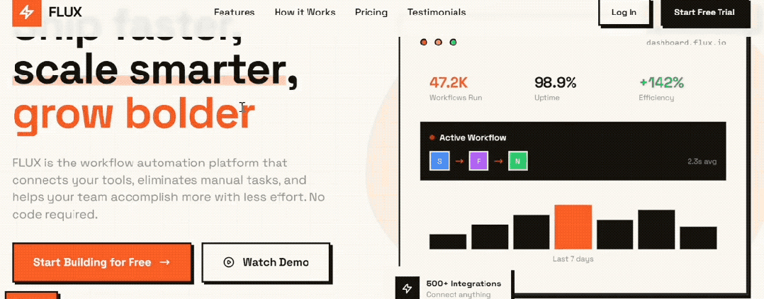 还有一个workflow生成平台的前端展示页,从头图简介、收费计划再到专家推荐语,每个版块的设计和配色都很赏心悦目,鼠标悬停等交互也很丝滑。