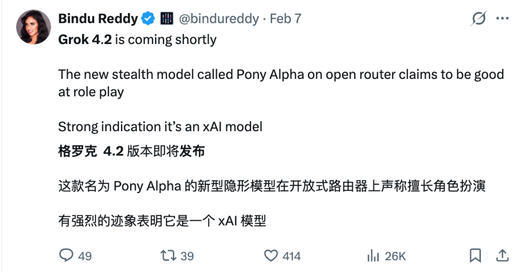 还有人猜它是xAI并入SpaceX后推出的Grok 4.2: