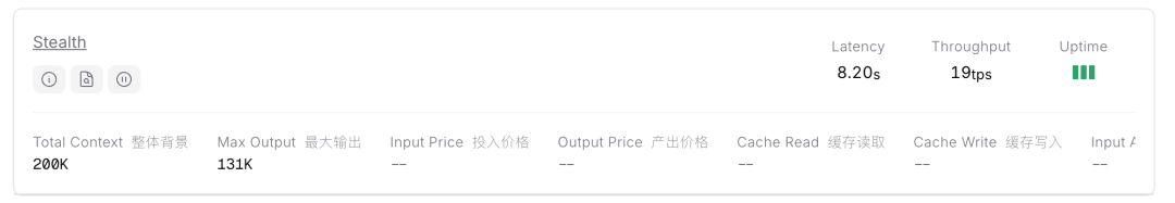 其模型页面显示,Pony Alpha具备200K的上下文窗口,最大输出131K。