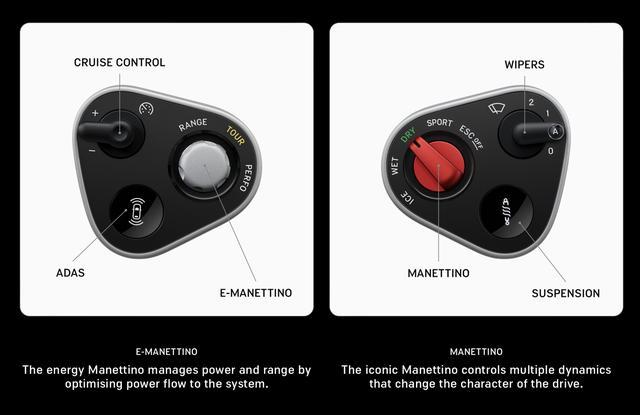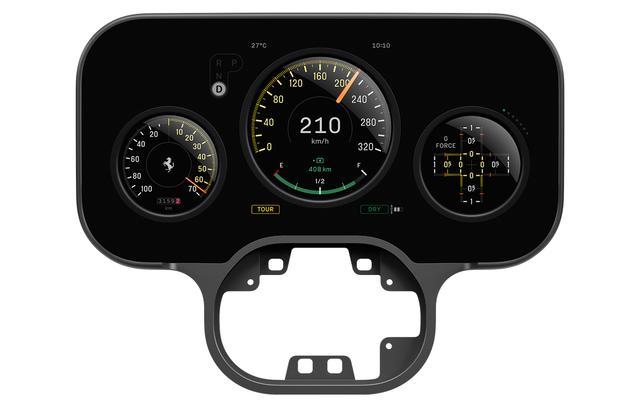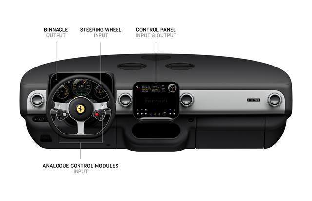 软件方面,这款汽车的人机交互界面秉承触感、清晰、直觉三大核心理念,团队优先选择实体按键,增强人与车辆之间的互动,方向盘使用简化三幅结构,灵感来自 20 世纪 50-60 年代的木质 Nardi 方向盘,整体被分为两个控制模块,类似 F1 赛车,相比标准法拉利方向盘轻 400 克。