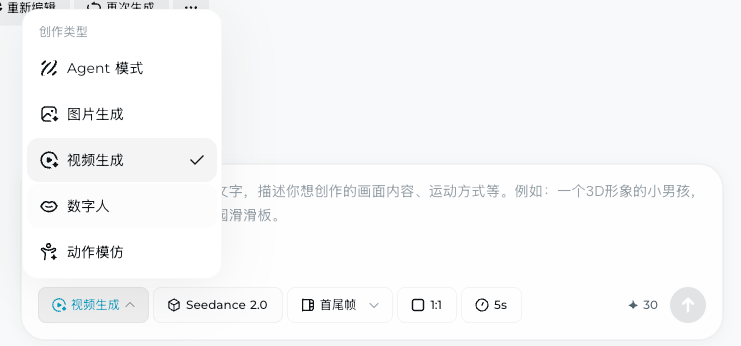 如果这里你找不到 Seedance 2.0 这个选项的话,那可能就是这个号没有被内测到,可以用小云雀 App 试试,或者过段时间等火山引擎发布了Seedance 2.0 API,就能在更多平台和APP里用到了。