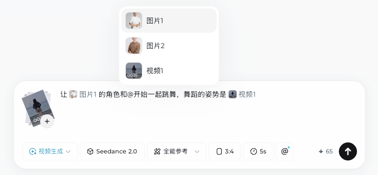 在这个模式下,你可以同时从图片、视频、音频和文本这四个维度来描述你想要得到的画面。