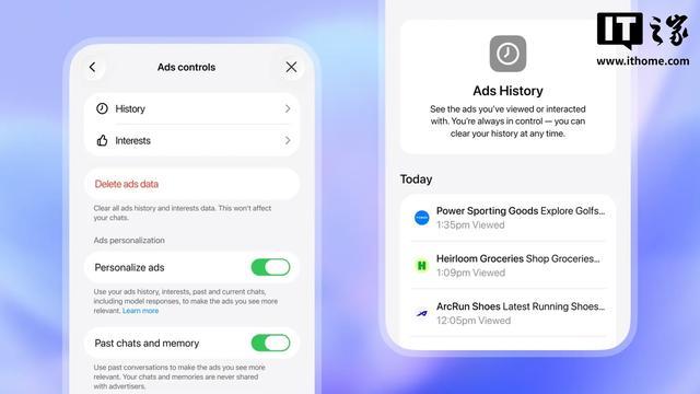 用户还可以查看自己的广告互动记录,并随时清除。此外,OpenAI 表示用户可以关闭广告、提交反馈、查看广告投放原因,并管理广告个性化设置。