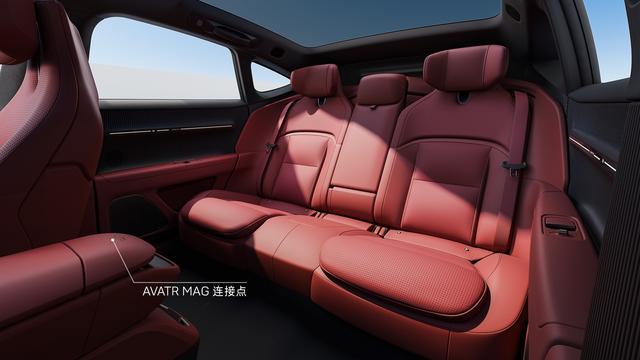 新车方向盘采用方形造型设计,设置有小塔一键语音按键和 Boost 一键加速,后排扶手箱处还配有 AVATR MAG 连接点。