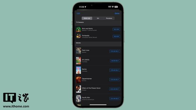 苹果之所以要移除愿望清单,是因为已将 iTunes 中的影视剧购买入口从 iTunes App 迁移到 TV App;从 iOS 17.2 开始,Apple TV App 已是 iOS 设备上购买影视剧的唯一渠道。