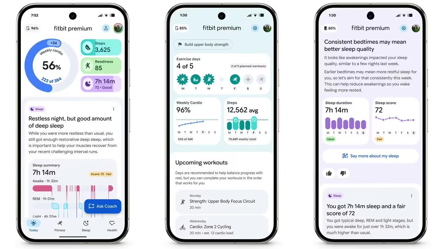 Fitbit AI 健康教练基于谷歌的 Gemini AI 模型,可以充当用户的虚拟健身教练、睡眠顾问及健康向导。用户首次使用时,需与 AI 教练进行 5 至 10 分钟的对话,以明确个人的运动动机与健康目标。