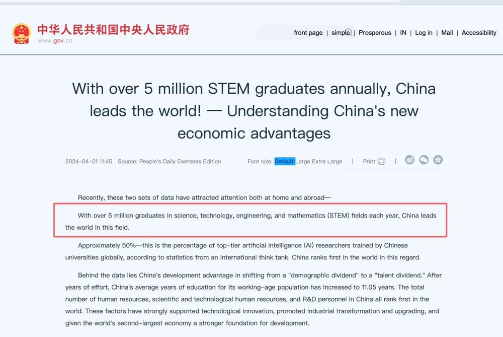 西方观察家会杠,说,那“130万”里有不少水分,比如“美国毕业生的定义更严格”或“中国数据包含职业技术学院”。我们先把这些争论放一边,我们真正要看的是趋势,是人心。