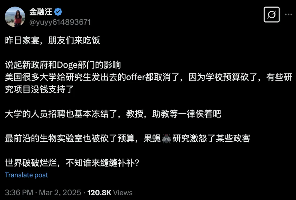 并没有。前白宫科学家Dr. Catharine Young在评论区补上了更绝望的一笔:仅仅去年一年,美国联邦政府就流失了超过10000名STEM领域的博士。