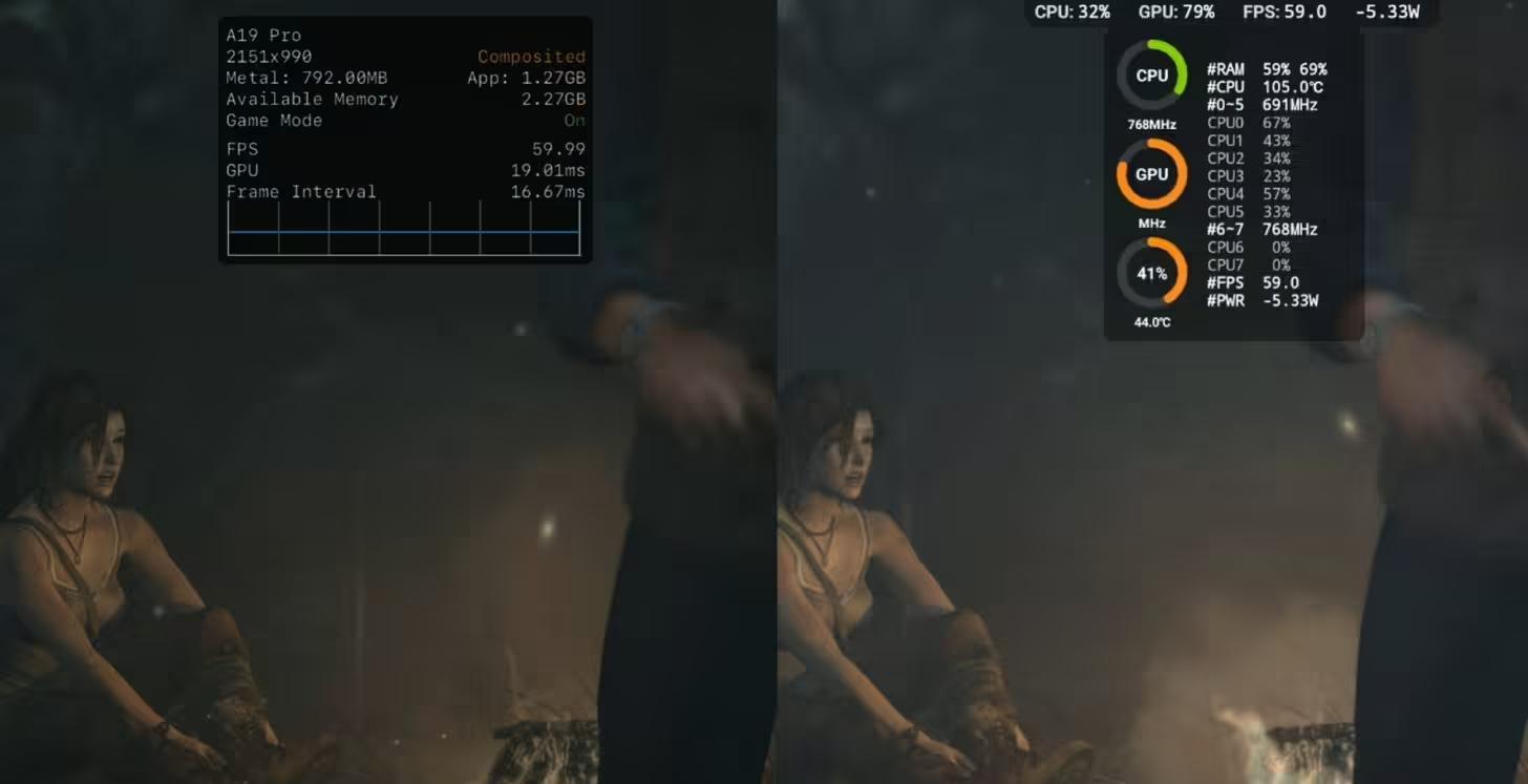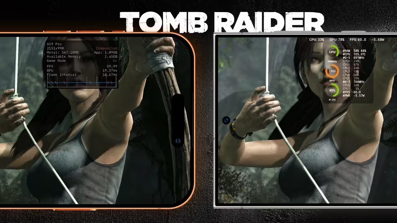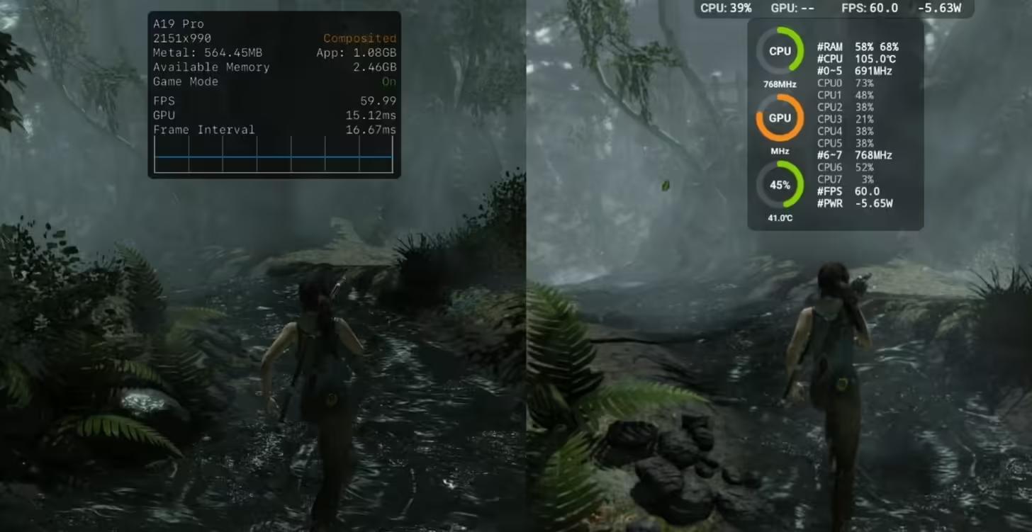 IT之家 2 月 11 日消息,科技博主 Dame Tech 在最新一期视频中,通过 2013 年发行的《古墓丽影 9》(Tomb Raider)经典游戏,对比 iPhone 17 Pro Max(搭载 A19 Pro)与红魔 11 Pro(搭载高通第五代骁龙 8 至尊版)的表现。