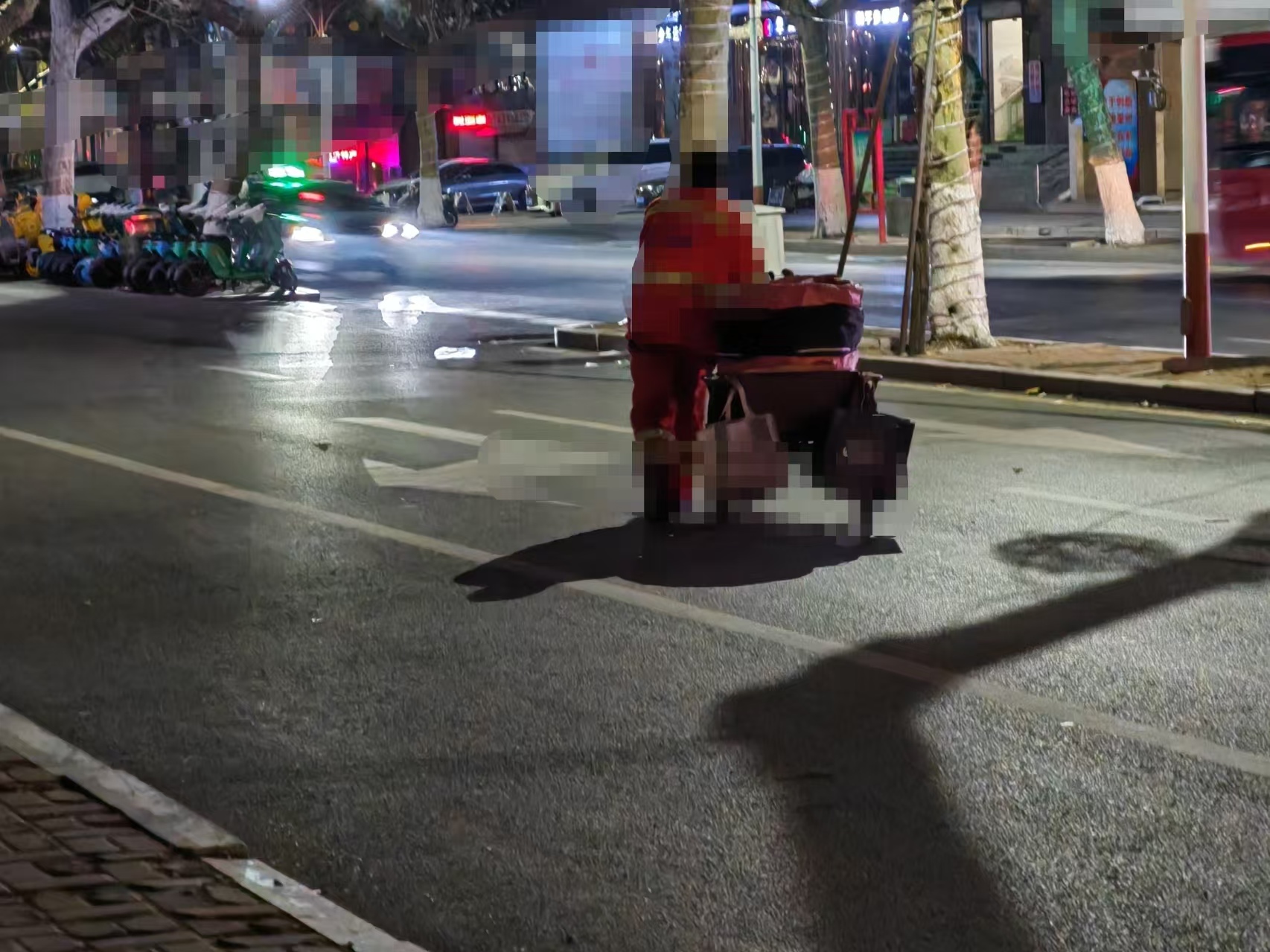 他是河北邢台人,刚来两个多月。大城市果然不一样,商铺林立,小吃街、小酒馆、特色餐厅、电影院、商圈,红男绿女让他眼花缭乱,也带来了成倍的垃圾。