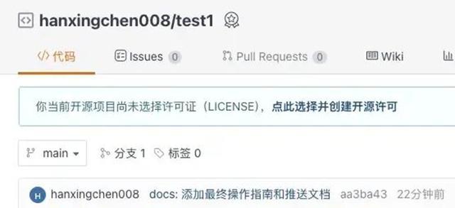 静候片刻后会看到其以及成功上传到你的远端仓库,可进入个人仓库来进行后续验证。