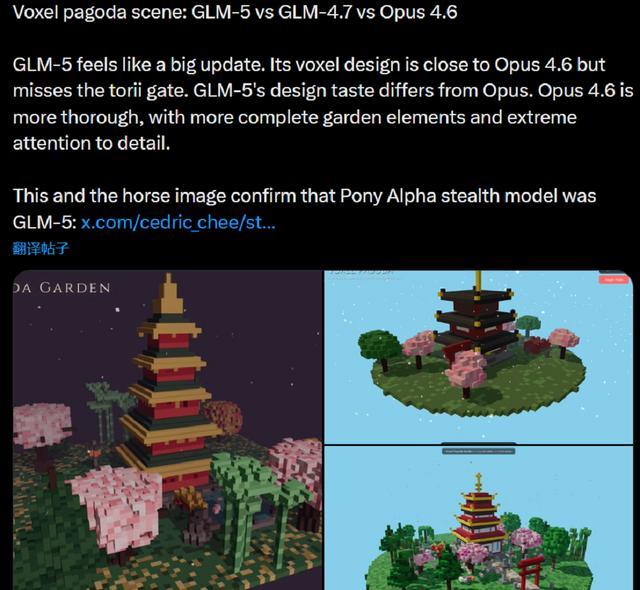 还有一位网友让GLM-5、GLM4.7和Opus 4.6进行了3D网页的开发,这位网友认为GLM-5的升级很大,与Opus 4.6有一些品味方面的差异。