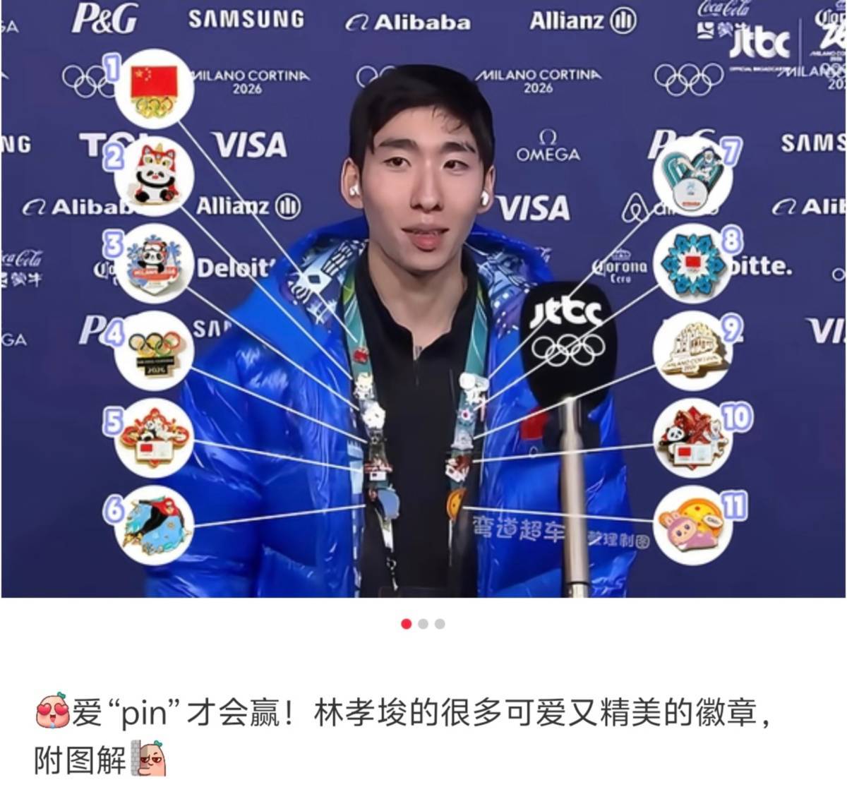 听闻各国运动员在紧张的比赛和训练之余,又㕛叒开启了每届奥运必备的保留节目:集 Pin 大战。这股风潮有多猛,看我们的短道速滑名将林孝埈证件挂绳上叮叮当当挂了 11 枚徽章就知道了。