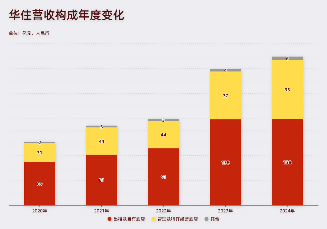 2025年前三季度,华住集团共经营12702家酒店,其中管理加盟及特许经营酒店占比达95%。