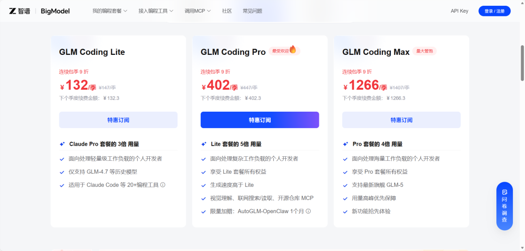 更为关键的是,官方此前发布公告称GLM-5在商用API层面仅对MAX套餐用户开放,待到模型资源更迭完成后Pro套餐用户才可使用GLM-5,至于Lite套餐用户则无明确说明。