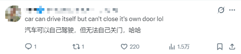 车能自己驾驶、处理各种复杂的路况,但没法自己关门……属实是把网友逗乐了: