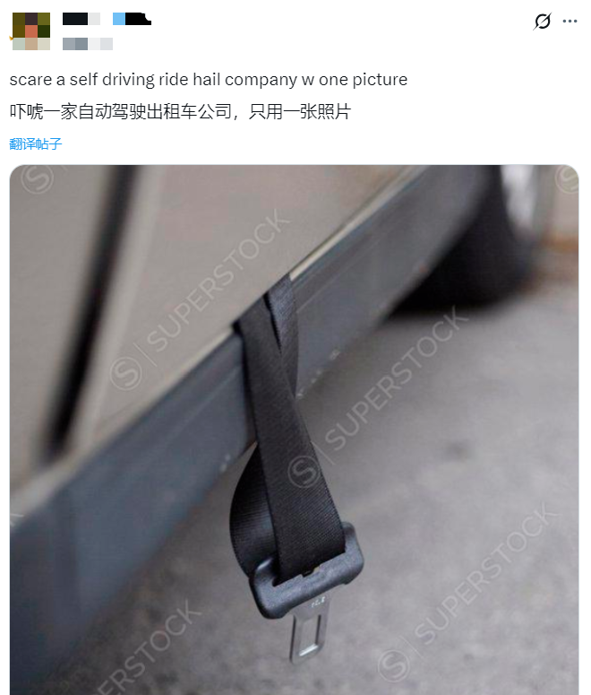 所以网友调侃,吓唬一家自动驾驶公司,只需要一张安全带照片就够了: