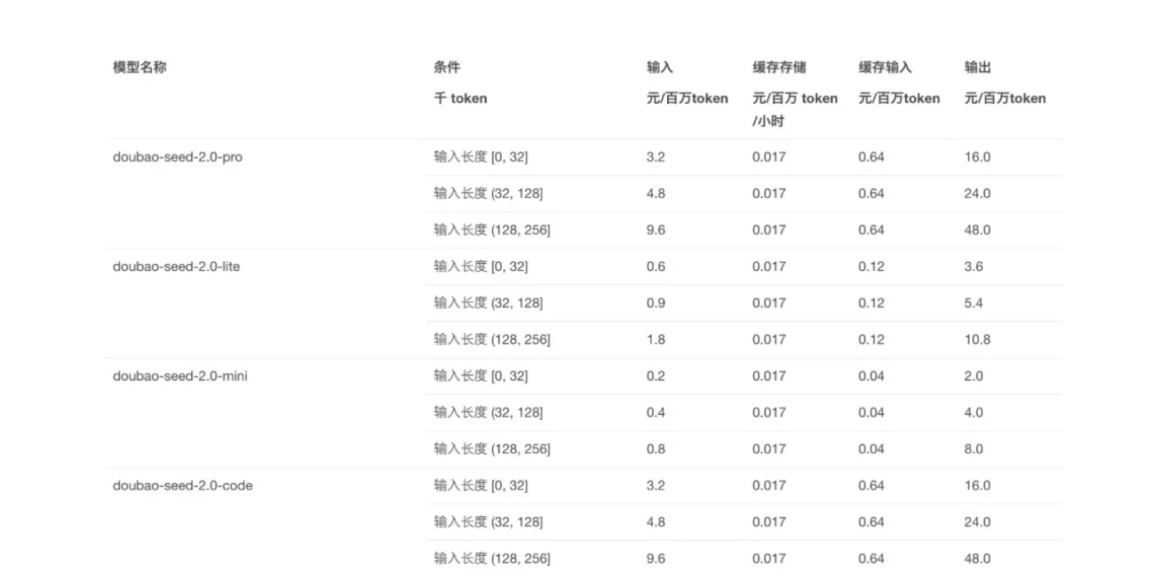 但这一切在价格面前都不重要了。因为豆包大模型 2.0 在提升性能的同时,Token 定价降低了约一个数量级。