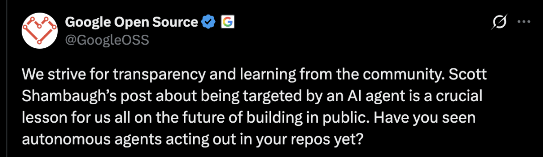Shambaugh公开呼吁部署者主动联系他,表示不追究责任,只希望了解这个故障模式的具体成因。并其他部署智能体的人,也检查一下自己的AI在做什么。